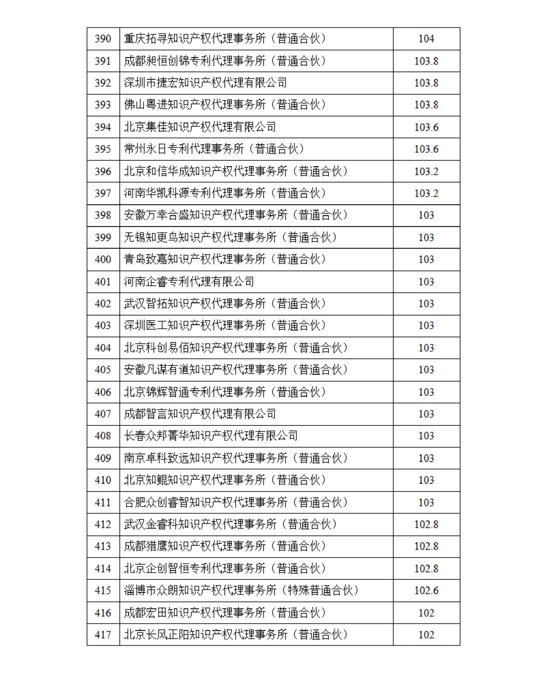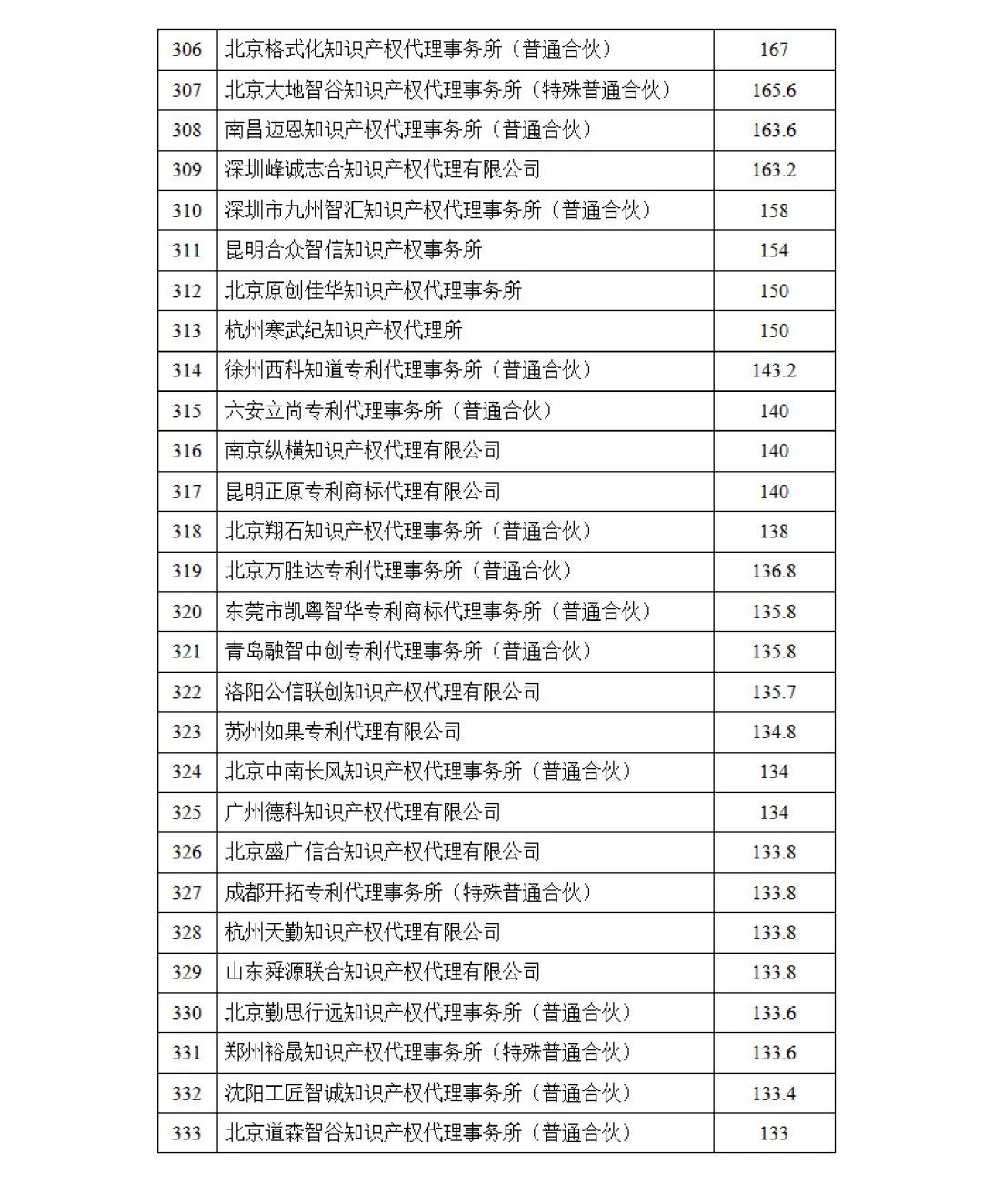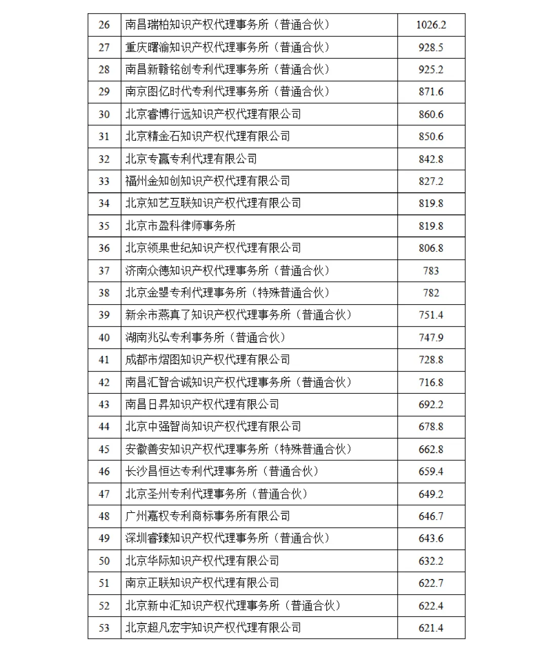 根据南昌市知识产权保护中心(以下简称南昌保护中心)关于印发《注册专利代理机构积分评价与奖励细则》(修订版)(洪知保〔2024〕20号)的通知精神,2025年全年共有433家专利代理机构在南昌保护中心获得积分,经统计并征询上述单位意见,现将专利代理机构积分排名结果予以公告。
