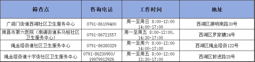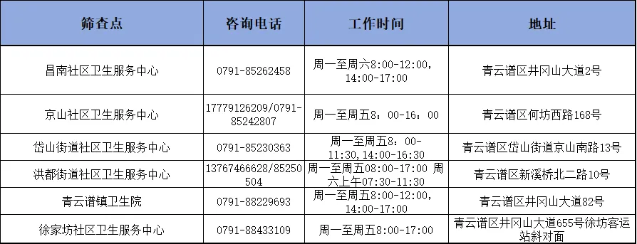 南昌市8个城区的54个筛查点已全面开放登记。(可详细查看文末列表)