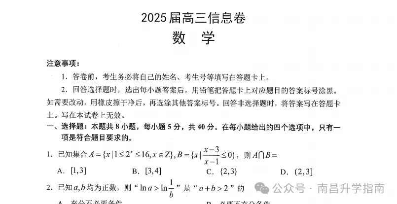 2025年南昌高三三模(信息卷)今天开考,小编持续带来了此次三模已考科目的真题+答案,赶紧收藏好来(每科考后第一时间更新,家长可先收藏,全部科目考完后再给孩子对答案)~