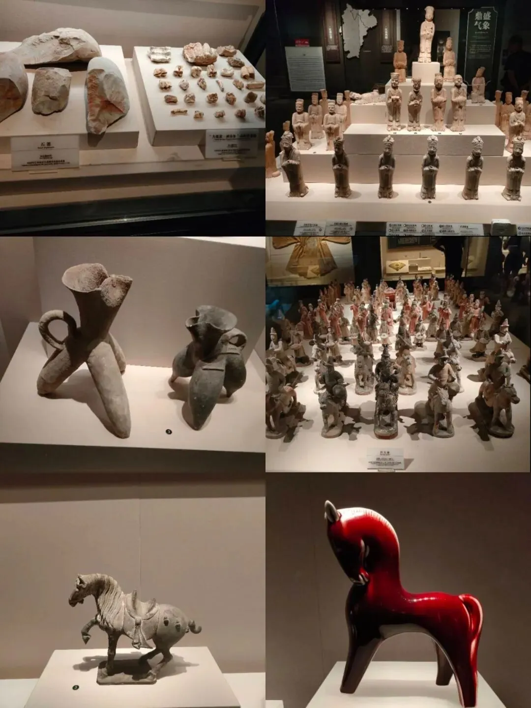 历史展馆展出了50万年前旧石器时代的石头、动物、牙齿,2万年前的野生水稻,1万年前的培植水稻,几千年前的陶器......大多是江西吴城一带出土的文物。历经西东汉、三国两晋、唐宋元明清,器皿逐步进化,粗糙简陋的生活用具、到精致大气的陶瓷系列文物见证了人类文明的发展。江西是中国古代窑址最多的省份之一,千窑竞烧、星罗棋布,古陶器之多、种类之丰富令人叹为观止。