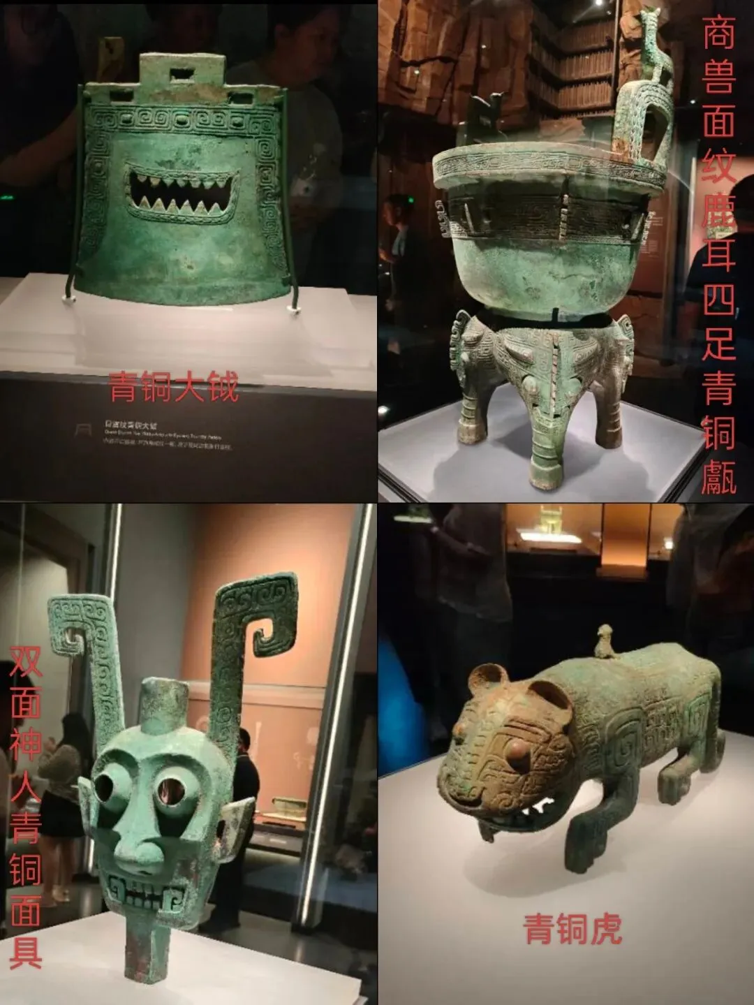 “虎踞江南”新干大墓与青铜王国展馆展出了不少镇馆之宝,如下图。新干大墓据说是继殷墟妇好墓、三星堆之后发现的