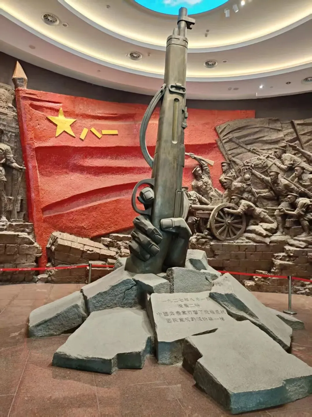 纪念馆导游给讲了个小故事,南昌起义后大部队往南走,经过潮汕到广州,朱德带领掩护主力撤退的队伍,并在其中挑选了200多名战士断后,令兄弟在列的弟弟出列,父子在列的父出列......最后这200多名平均年龄17岁的孩子就彻底定格在油画中那个抗战的画面了,为革命英勇牺牲了。原来电视剧里熟悉的场景正是来源于历史上的真实故事。