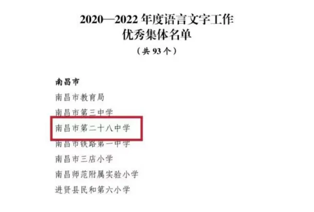 【喜报】热烈祝贺南昌二十八中教育集团总校荣获2020-2022年度全省语言文字工作优秀集体称号