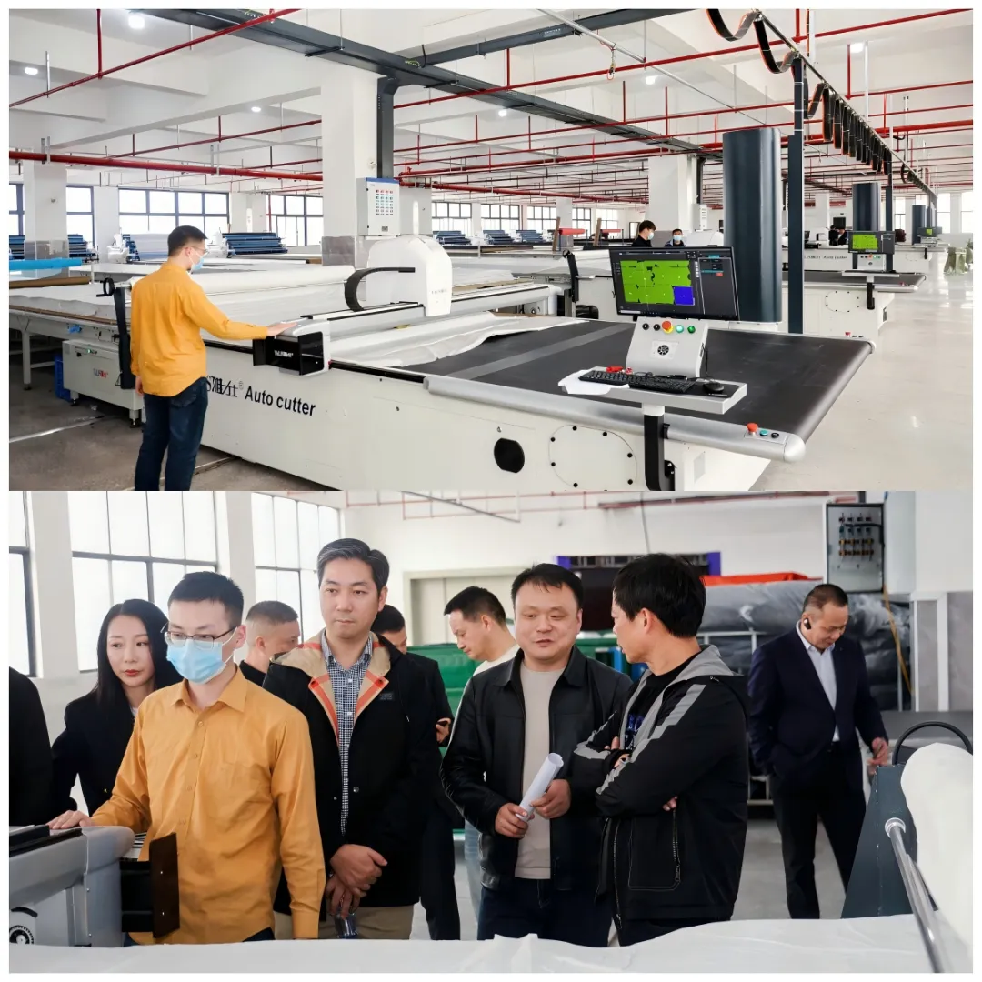 会后,在安徽雅力士智能科技总经理余志华引导下,与会企业代表走进江西荣章制衣厂,实地观摩从预缩、拉布、验布到智能裁剪的全程不间断生产演示。