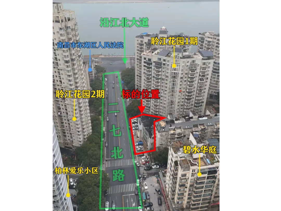 资产周边环绕聆江花园、碧水华庭、柏林爱乐小区等数十个成熟高端社区,汇聚海量高净值常住人群;直线距离可达东湖区人民政府、东湖区人民法院,坐享行政单位配套辐射;周边江西银行、中国银行等金融机构环伺,商超、高端餐饮、休闲娱乐等生活配套一应俱全,商务与生活需求全维度满足。