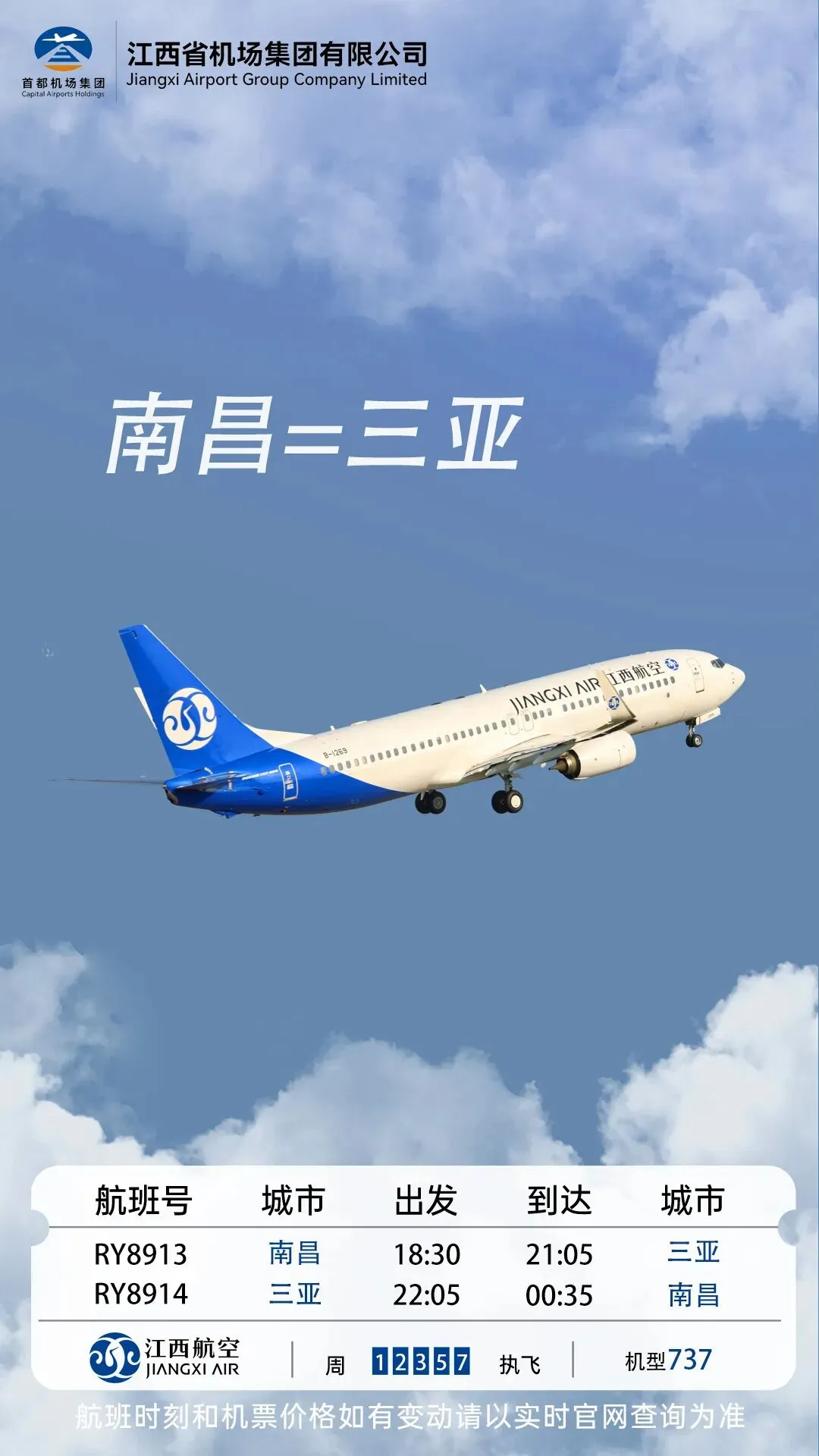 【换季新增】4月10日起,江西航空新增南昌=三亚往返航班!