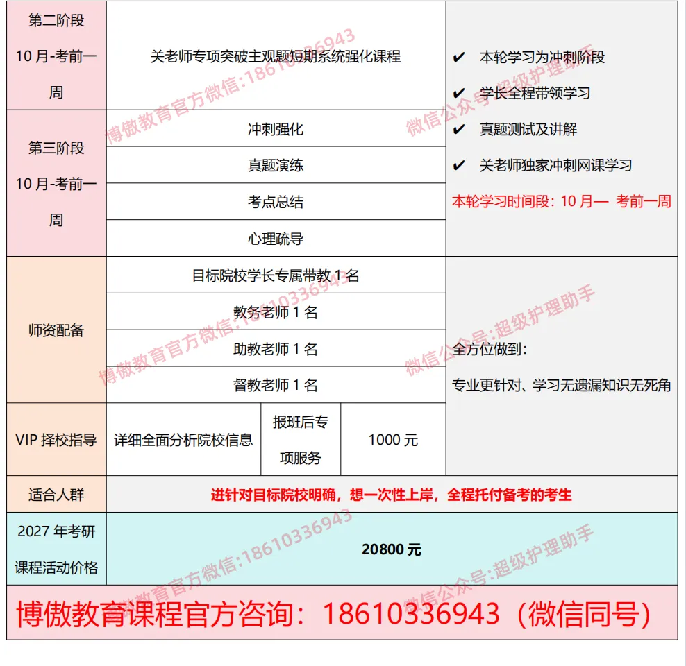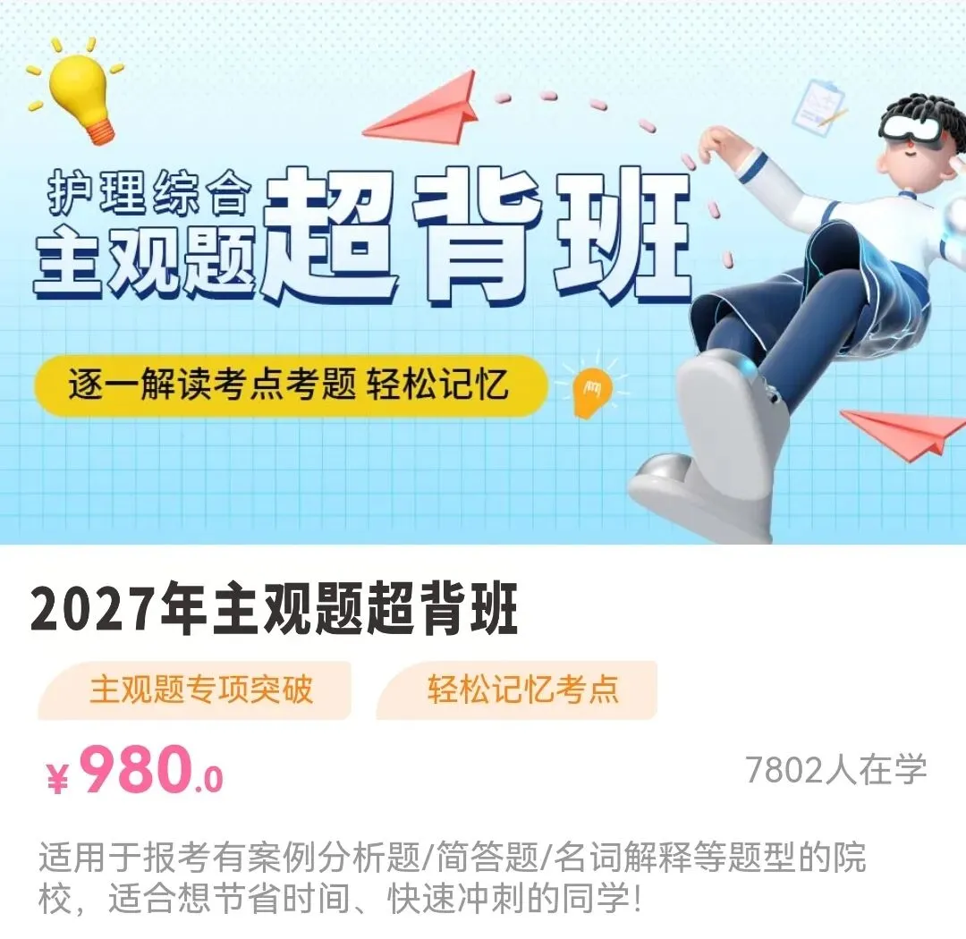 最新护理综合2027年主观题超背班现在开始报名啦!