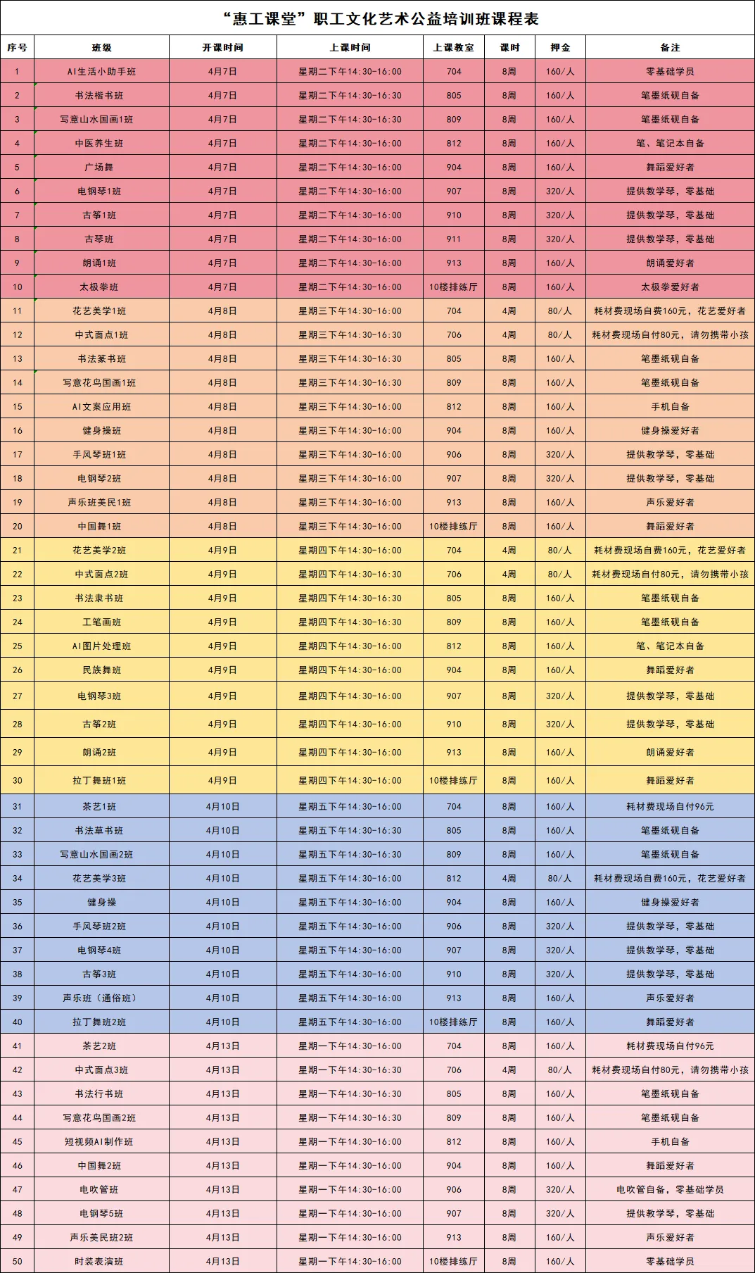 5、如报名人数不足计划名额一半时,并班或取消该班次;