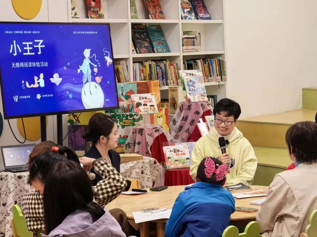 活动在温馨的经典品读环节中拉开序幕。在主持人与学校带队老师的引导下,学子们兴致勃勃地翻开《小王子》系列绘本、盲文读物、大字本及电子书等多种无障碍格式资源,指尖触摸凸出的盲文,目光凝望清晰的大字,耳畔聆听舒缓的音频,原本平面的文字,化作了可触、可听、可感的立体世界,让每一位学子都能以自己舒适的方式,读懂经典童话的美好。