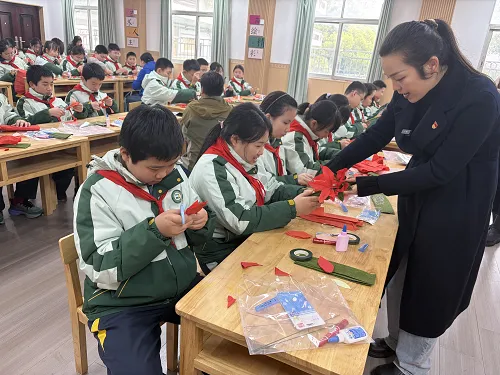3月24日,南昌市豫章学校教育集团豫章路校区特邀江西省革命烈士纪念堂讲解员走进校园,为六年级的学生们带来了一堂别开生面的“思政课”——手工制作映山红,以这种特殊的方式缅怀革命先烈,传承红色基因。