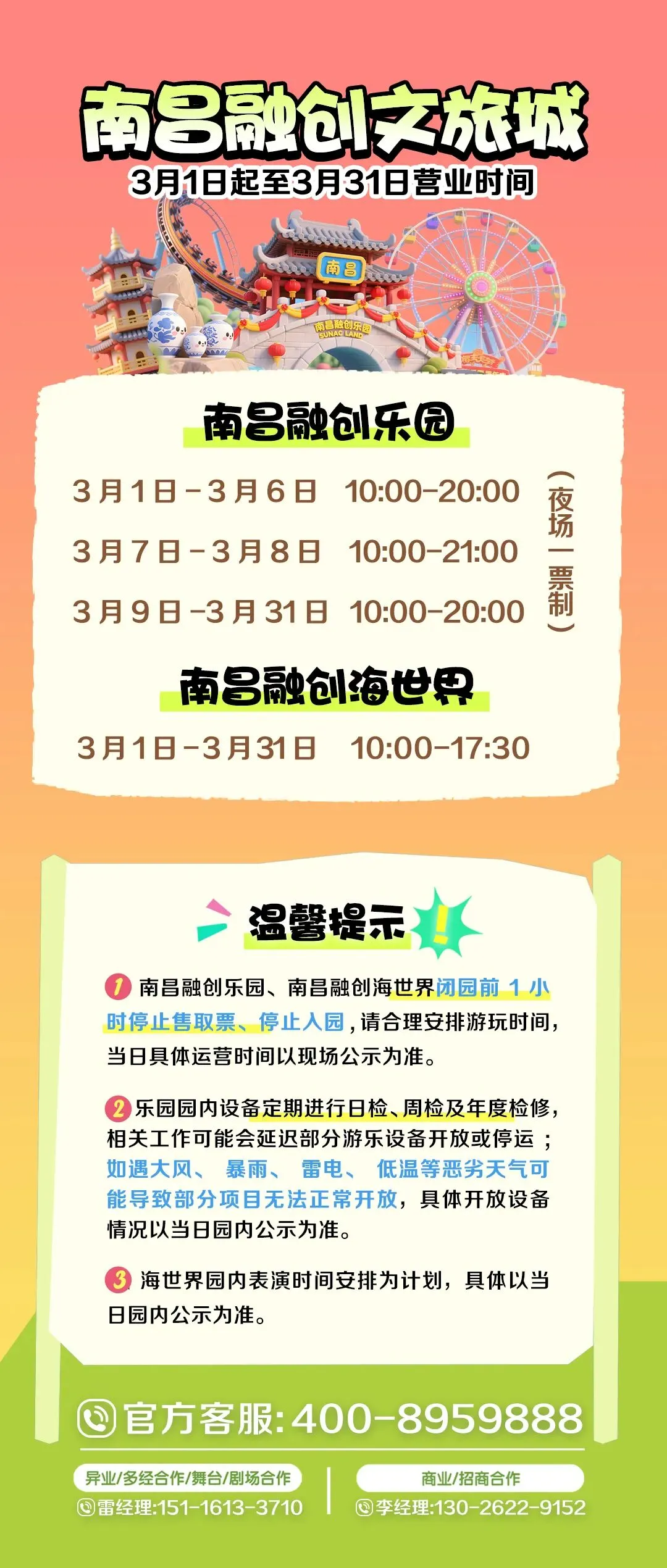 更多详情可关注“南昌融创文旅城”官方微信公众号,如有疑问可致电客服热线:400-895-9888 ,我们将竭诚为您服务。