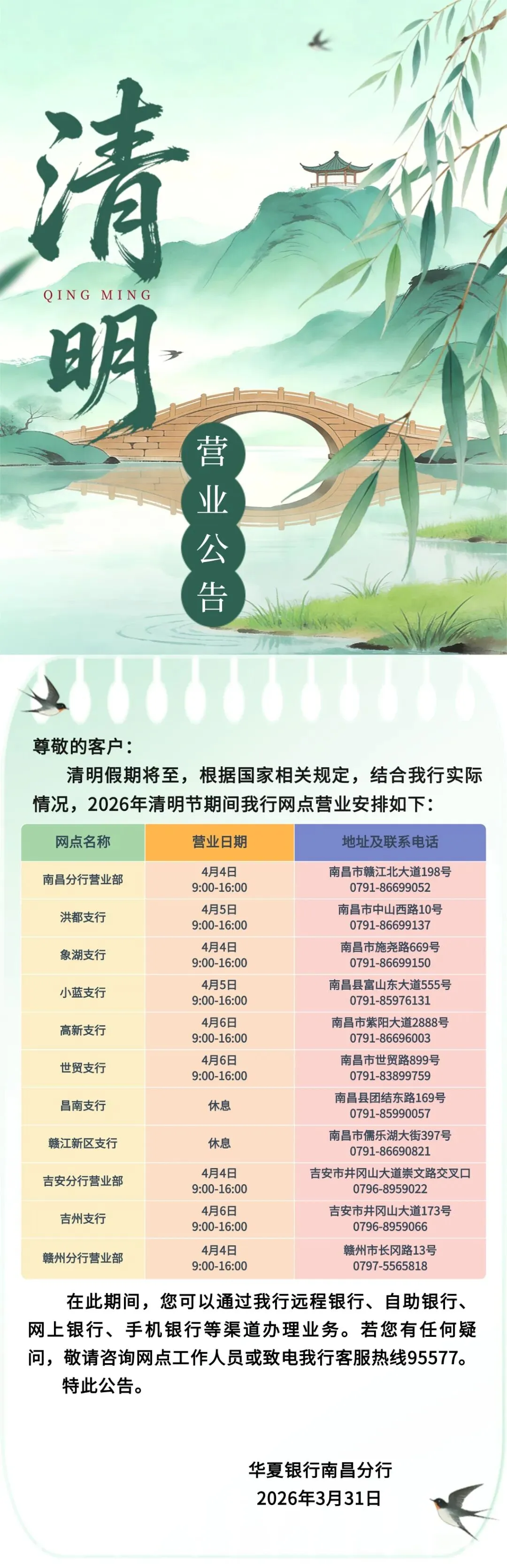 【通知】南昌县芳草学校2026年清明节放假通知及温馨提示