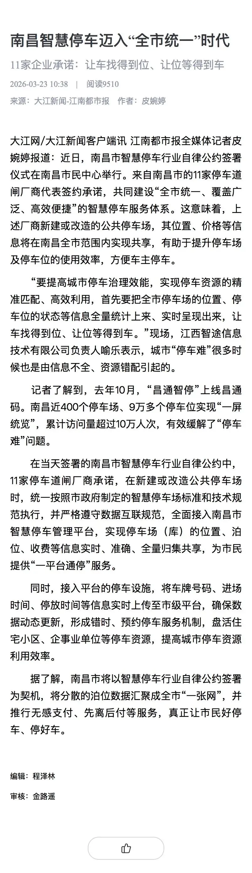 近日,南昌市智慧停车行业自律公约签署仪式在南昌市民中心举行。来自南昌市的11家停车道闸厂商代表签约承诺,共同建设“全市统一、覆盖广泛、高效便捷”的智慧停车服务体系。