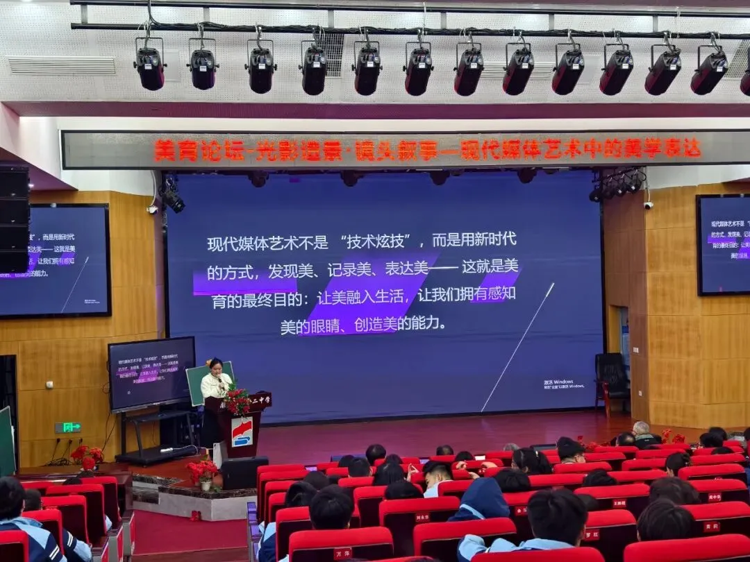 3月25日,面向学生的“美育论坛”正式上线。美术组冯婧老师带来的以“光影造境・镜头叙事——现代媒体艺术中的美学表达”为主题的美育讲座,打破了传统美术的认知边界,引领同学们走进现代媒体艺术的美学世界,在光影流转与镜头起落间,感受美、发现美、创造美,让美育的种子在校园落地生根。