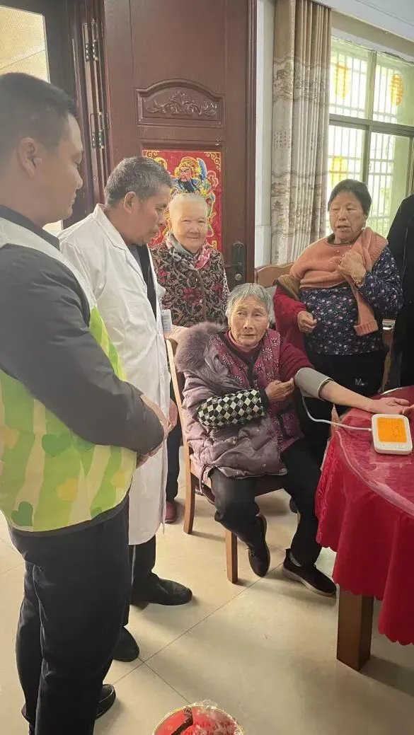 守护老人健康,是兴家风、护家庭的重要基石。村医殷凤明为老人们提供免费血压测量健康服务,耐心询问身体状况、细致记录血压数据,叮嘱日常饮食、作息与用药注意事项。
