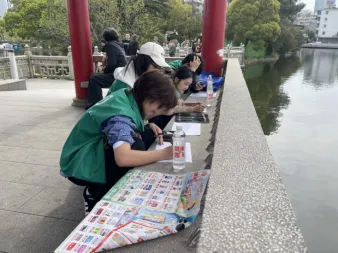 在清洁行动之余,志愿者们以河道风光、生态保护为灵感,用画笔勾勒出绿意盎然的河岸、清澈见底的河水,写下“爱护河道,人人有责”等环保标语,将生态理念融入一幅幅生动的画作中。这些作品不仅展现了志愿者们对美好生态的向往,也成为向市民传递环保意识的鲜活载体。