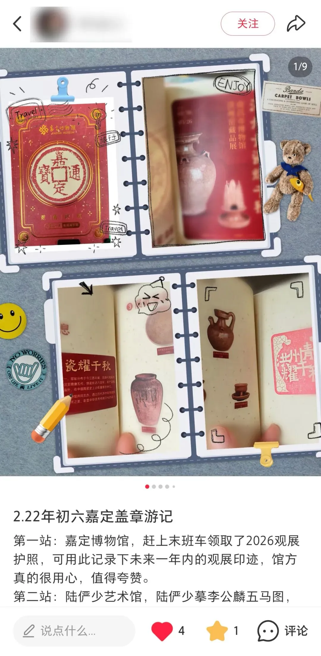 ● 伴随着观展护照的回归,展览限定贴纸与纪念印章成为观众争相收集的“小确幸”,集章打卡的队伍里,有专注的青少年,也有重拾集藏乐趣的长者。一张张贴纸、一枚枚印章,不仅有效增强了观众的观展沉浸感与收藏乐趣,也开启了属于嘉博的2026年观展之旅。