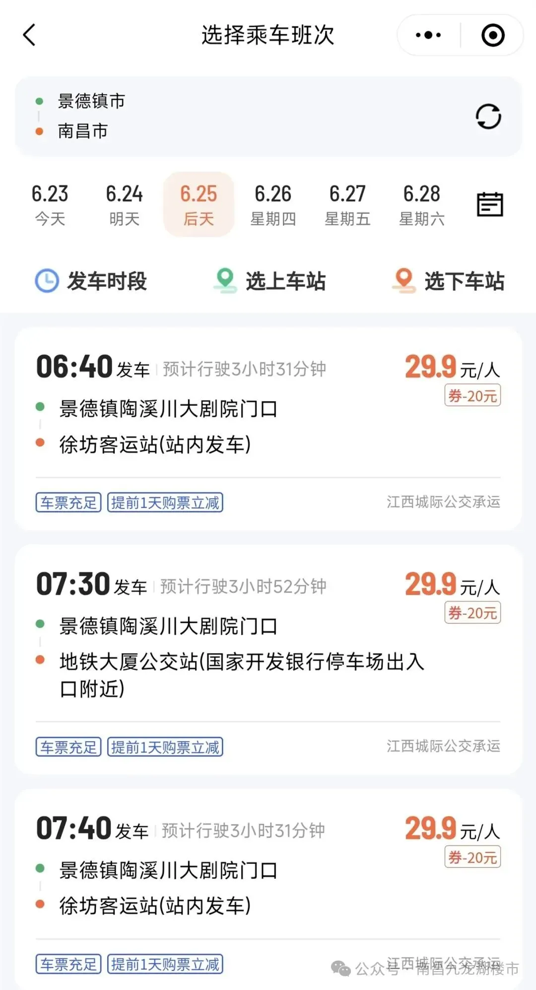好消息!从江西都市城际公交获悉,2025年6月20日—7月10日“站点巴士”推出暑期限时福利更好满足南昌、景德镇、抚州市、崇仁县四地市民的出行需求,提升出行体验 。线路一:南昌至景德镇,原价49.9元/人,提前2天购票29.9元/人,提前1天购票39.9元/人,当天购票49.9元/人,新客户扫码券购票仅需34.9元/人。