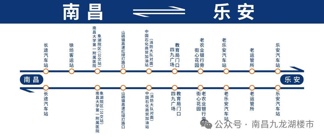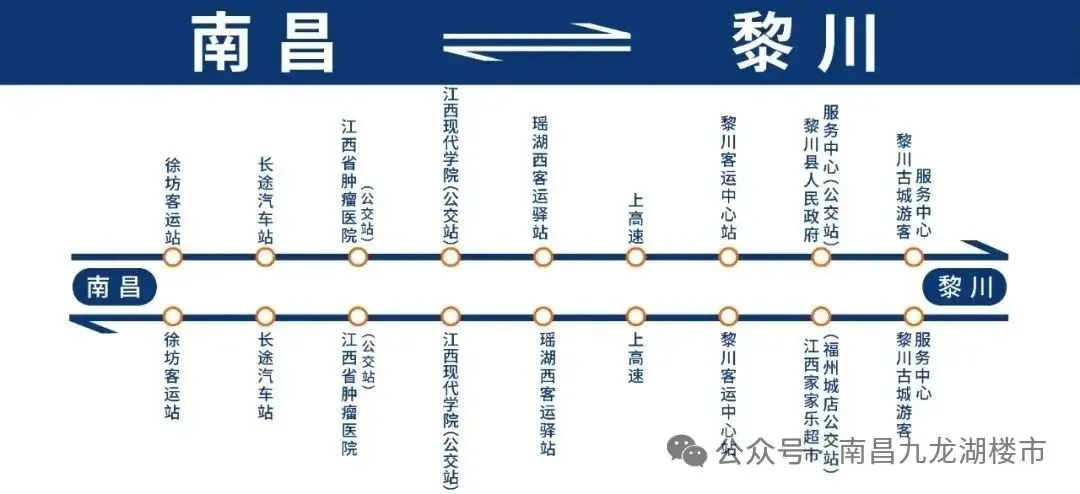 4、开收班时间:南昌始发徐坊客运站,7:00-18:20每30分钟一班,返程时间为7:00-18:10,全程120公里,运行约2小时。
