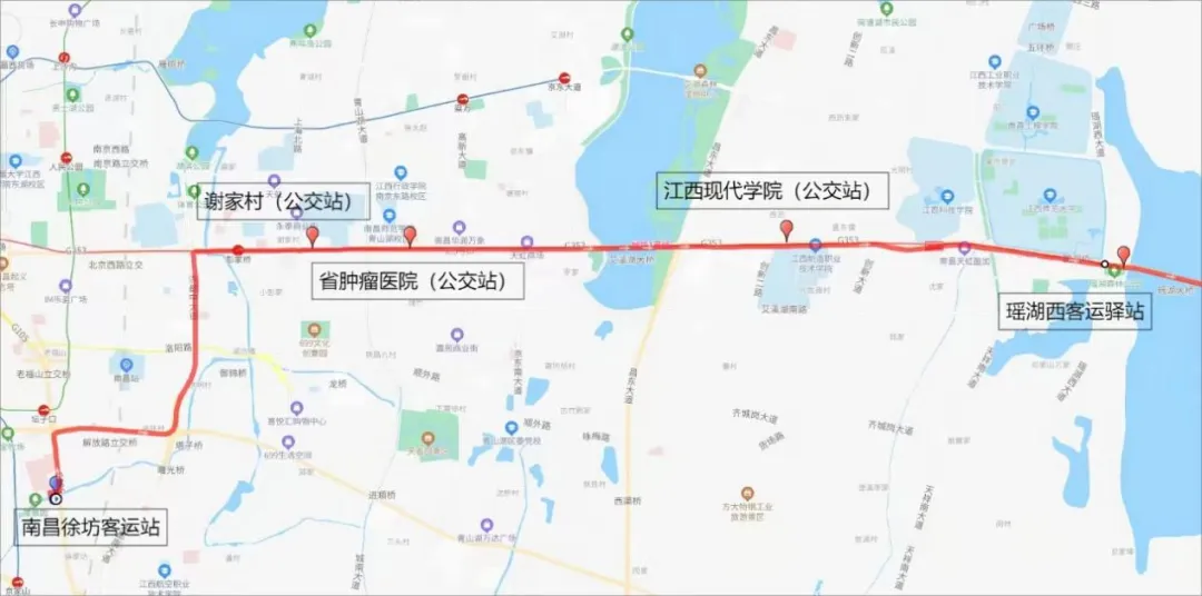 3、停靠站点:停靠站点为徐坊客运站、谢家村公交站、省肿瘤医院公交站、江西现代学院公交站台、瑶湖西客运驿站、鄱阳县体育馆(开元时代公交站台)、鄱阳客运总站;