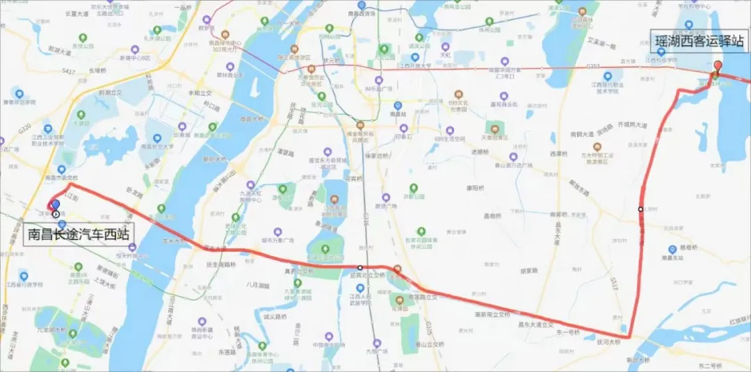 1、线路走向:南昌长途汽车西站→生米大桥→南昌大道中→天祥南大道→瑶湖西→杭长高速→鄱余公路→湖城大道→洪迈大道→鄱阳客运总站,往返线路相同;