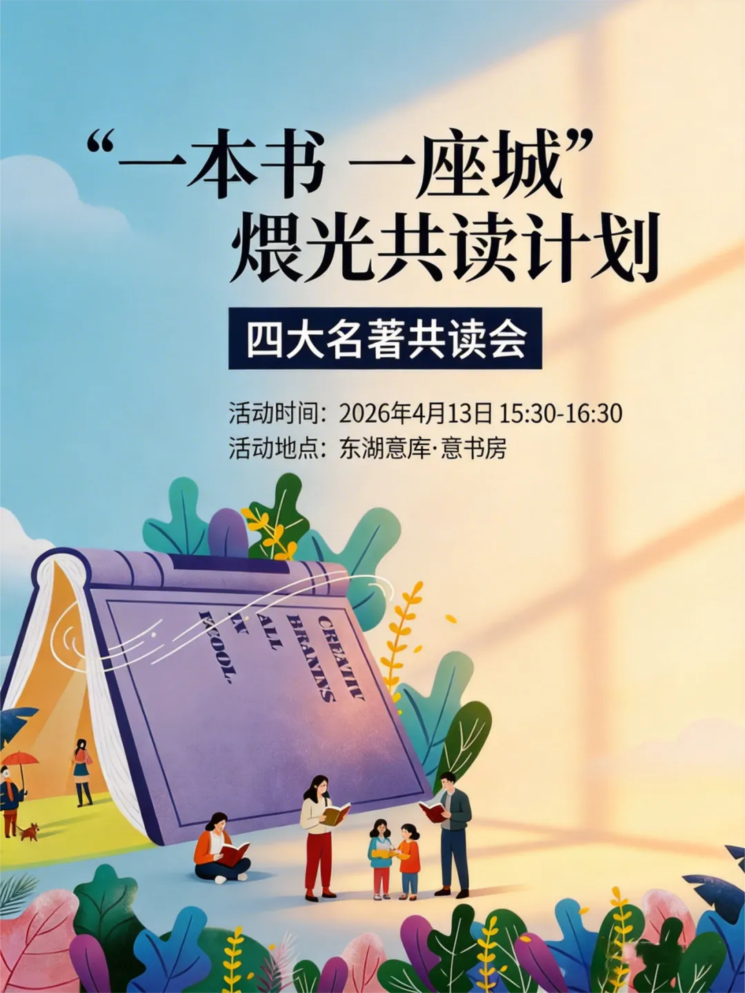 放下手机,与书友围坐。一本书,一座城。在“煨光”共读会,我们一起翻开“四大名著”,在经典中寻找共鸣。我们相信,一本书,足以映照一座城的千年文脉;一次共读,亦能连接起无数个向往光明的心灵。在这里,阅读不仅是个体与文本的对话,更是人与人、人与城之间温暖而深刻的精神联结。
