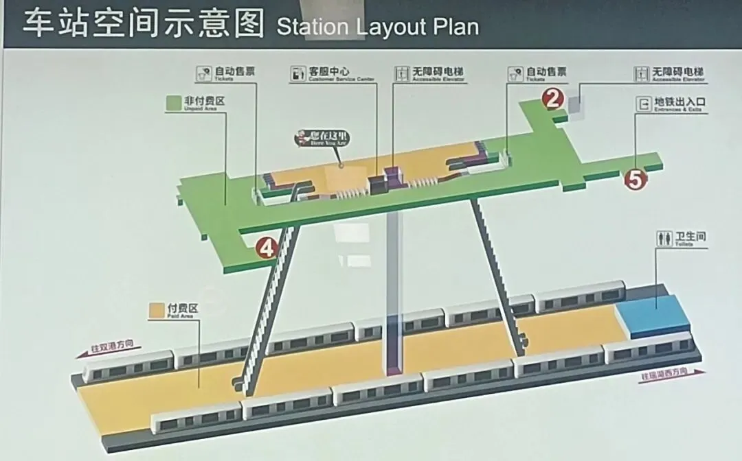 | 服务设施 | 查询屏、自助购票机、厕所、客服中心、站内无障碍电梯、节能扶梯、分类垃圾桶 |