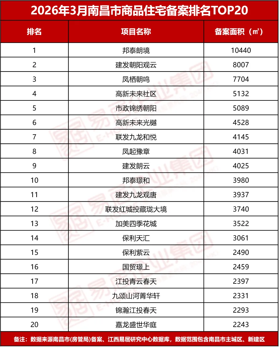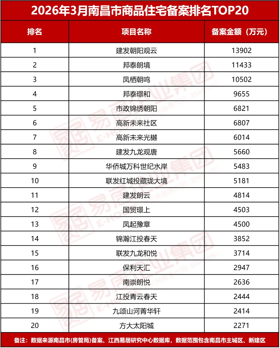 当前位置:首页>南昌>重磅|2026年3月南昌市项目销售备案排行榜发布!