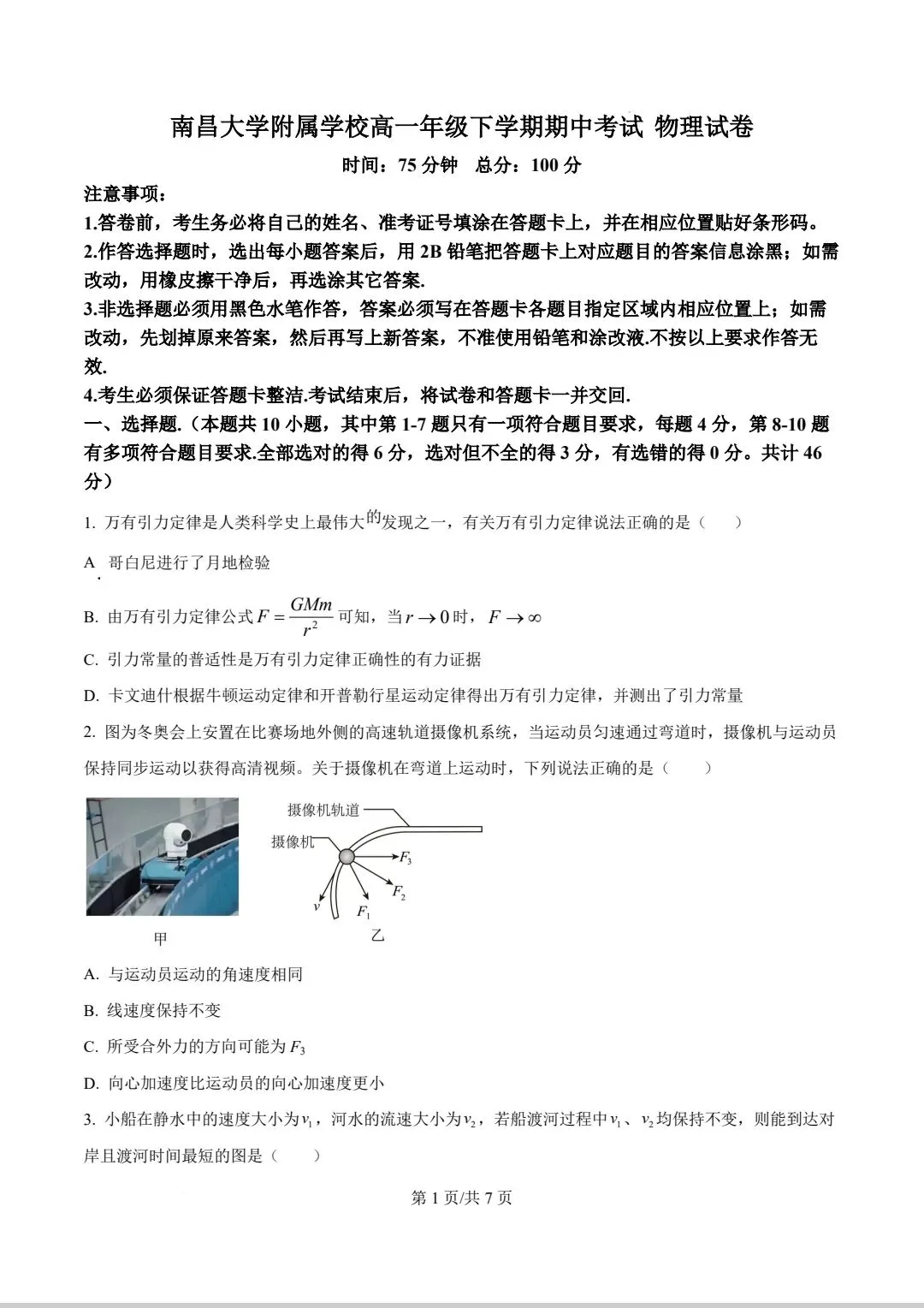 >【免费分享】2024-2025南昌名校高一期中试卷以及答案