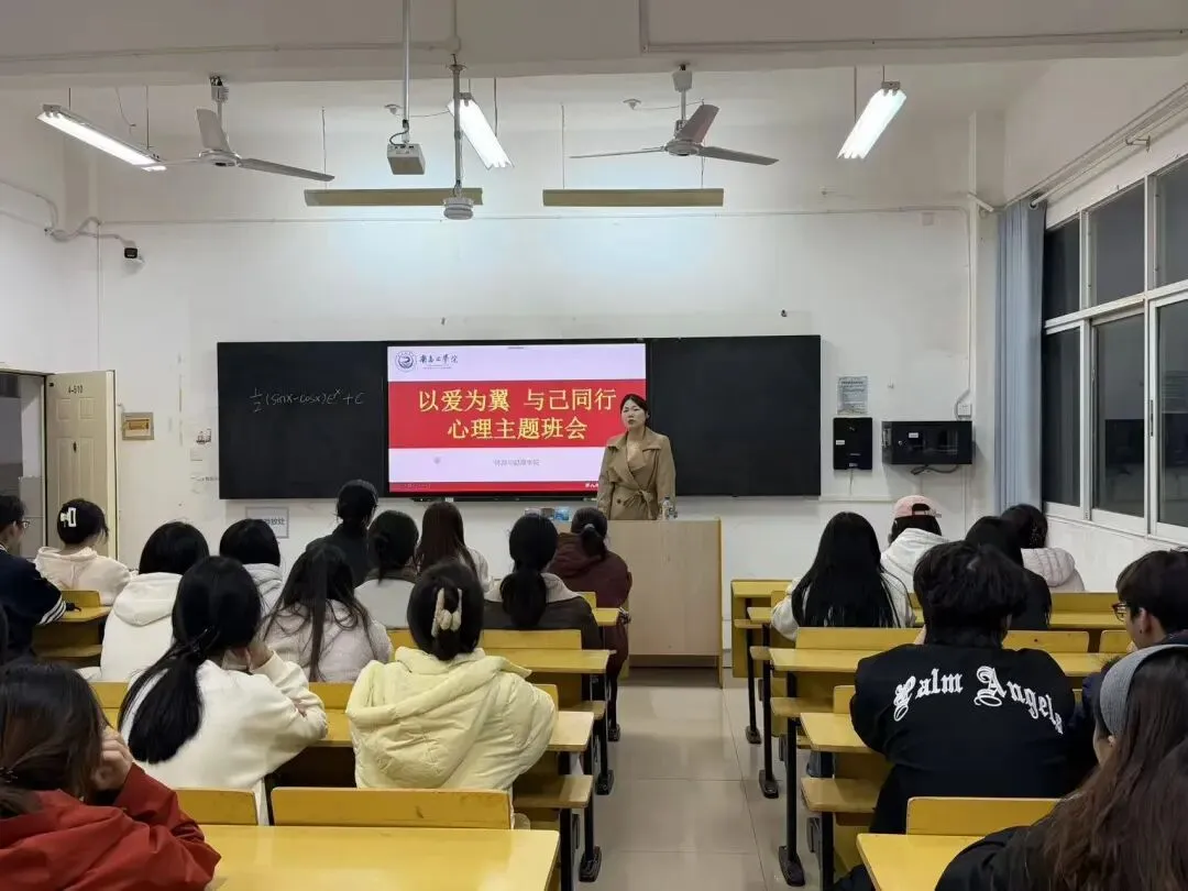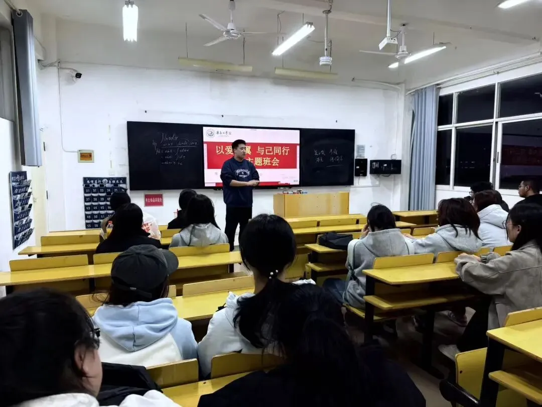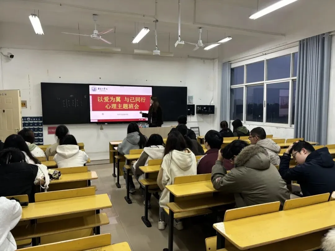 班会伊始,各辅导员结合专业特点,围绕自我接纳、情绪管理、人际交往等关键话题,通过案例分析、互动交流的方式,引导同学们正视情绪、感知爱、表达爱,同时学会与自己和解,以积极心态处理亲密关系、同学交往中的问题。