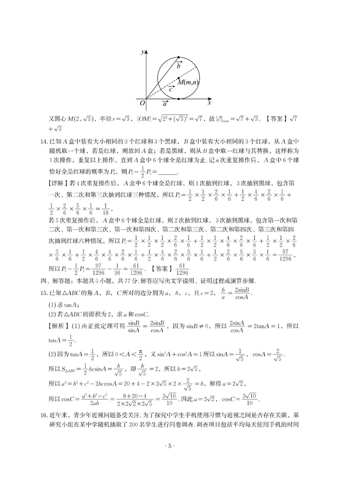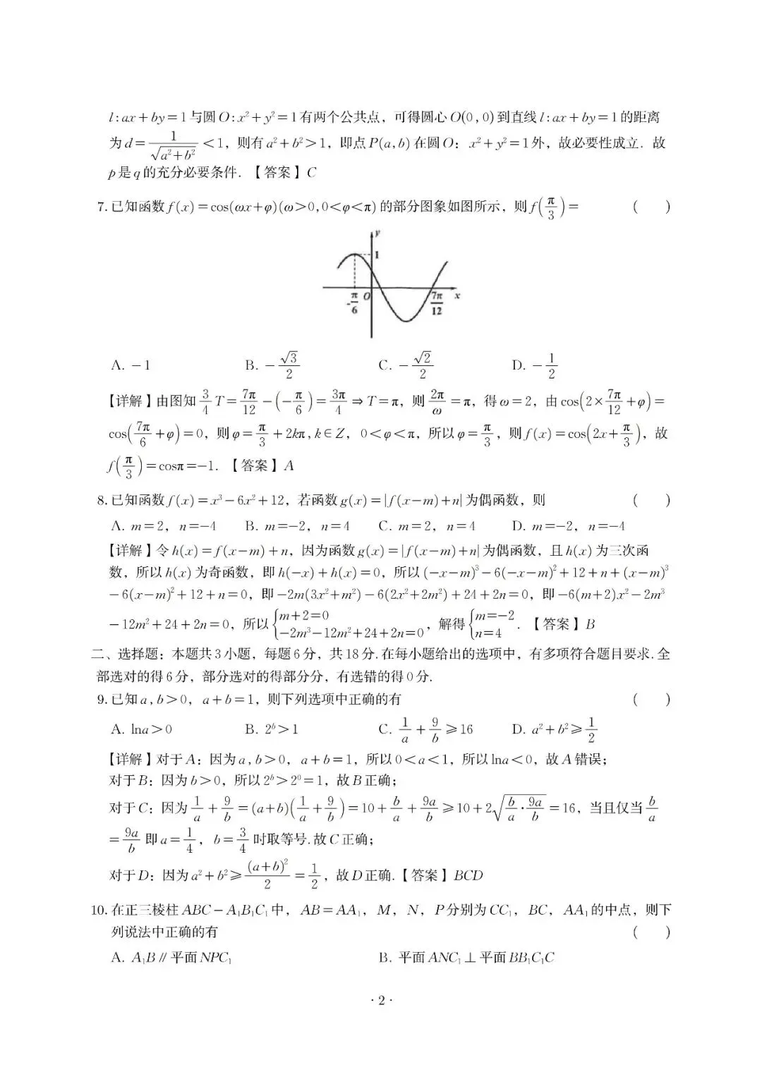 >南昌市2026届高三下学期三月测试数学解析