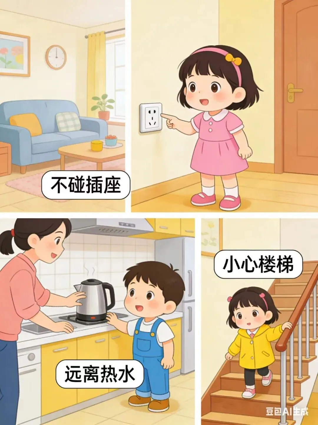 5. 避免过度刺激:不让孩子长时间看电子产品,不接触恐怖、暴力的画面与内容,营造温馨和谐的家庭氛围,让孩子在轻松的环境中保持愉悦心情。