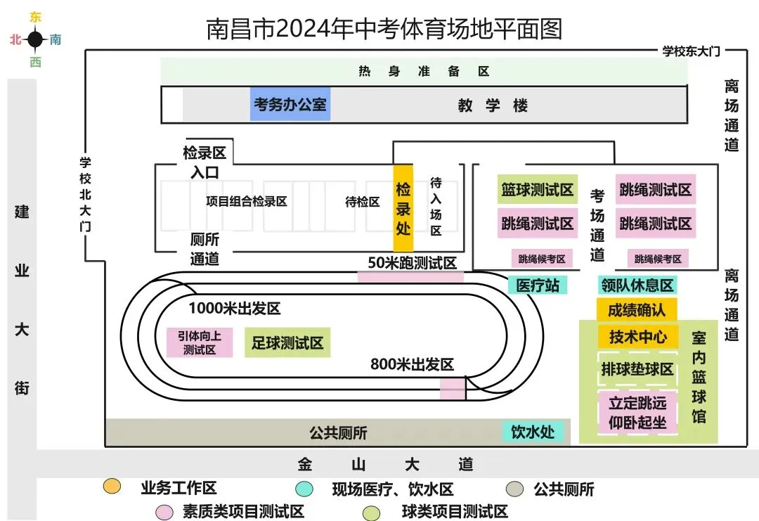 考试用的室外排球场、羽毛球场、足球场及室内篮球馆都超国家标准,公安、消防、医疗、交通、供电等相关单位将驻点保障,部分在昌高校组织了一大批学生志愿者,强化了考试期间人员力量。