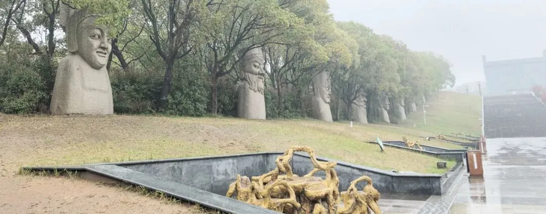 走近南昌瓷板画艺术博物馆,最先映入眼帘的并非馆舍建筑,而是门前一片气势沉静的面具雕塑园。