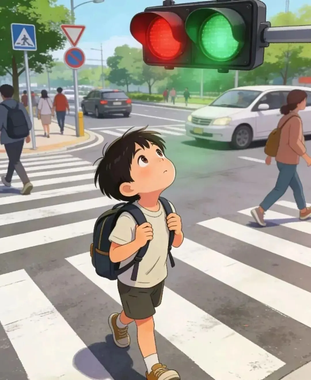 3. 在道路上行走时,请走人行道。如遇无人行道的道路,要靠路边行走。