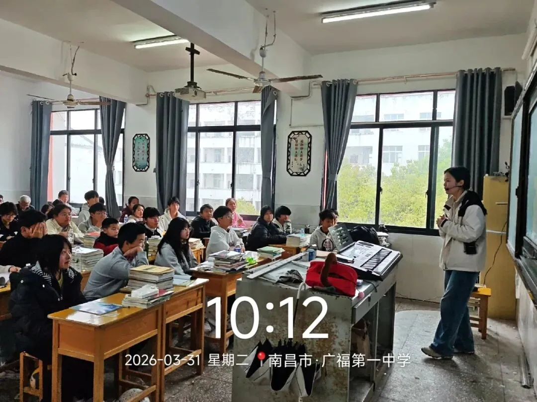 南昌县教体局2026年艺术专业教师下乡支教活动持续推进,3月31日,南昌县洪范学校刘玉璇教师走进广福第一中学,带来一堂生动精彩的音乐课。