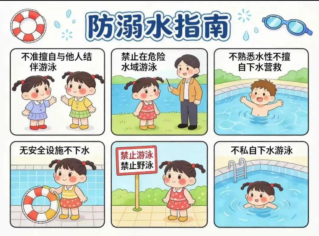 天气转暖,假期里请家长一定看护好孩子,让孩子牢记防溺水安全常识,教育孩子做到“六不准”: