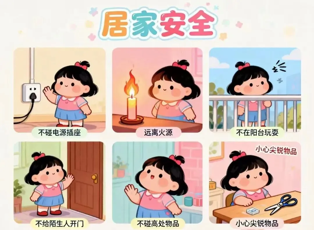 2.教育孩子居家不要给陌生人开门,注意防骗、防盗、防抢;