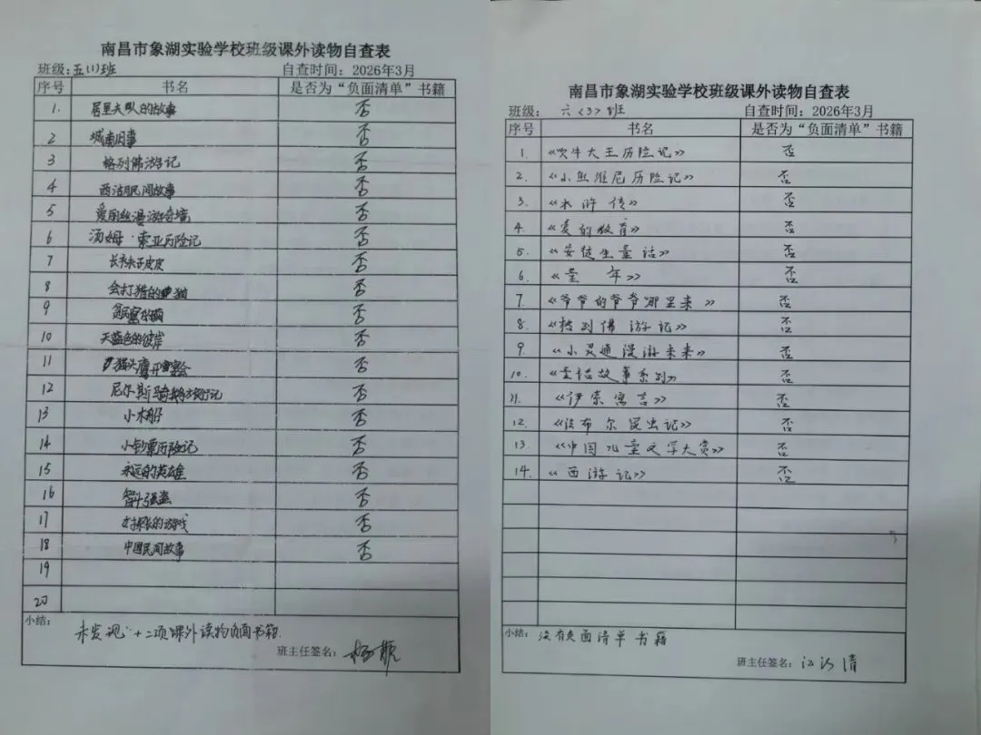 教务处对校园图书室、各班级读书角开展全覆盖、无死角的书籍专项清查工作。重点排查是否存在涉黄、涉暴、涉赌、涉毒、宣扬封建迷信、内容低俗及不良导向的出版物,及时清理不良读物,进一步净化了校园图书资源环境。