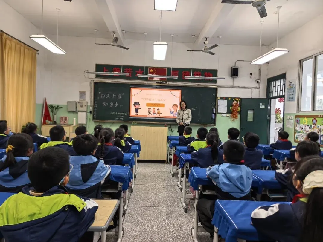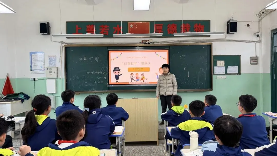 为让“扫黄打非・护苗”理念深入人心,各班开展“扫黄打非・护苗成长”主题班队会。课堂上,班主任通过案例讲解、趣味问答、视频播放等形式,向学生讲解 “扫黄打非” 的内涵与重要意义,识别不良出版物的方法,以及沉迷不良文化内容的危害。鼓励大家主动远离非法出版物,积极举报不良文化行为,争做 “护苗小卫士”。
