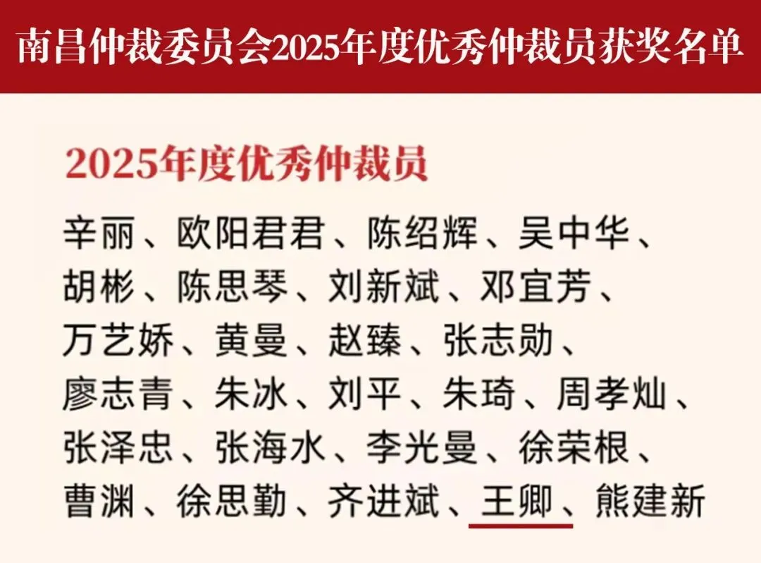 未来,王卿律师将珍惜荣誉、砥砺前行,继续以更高标准履职尽责,为南昌仲裁事业的高质量发展贡献智慧与力量。