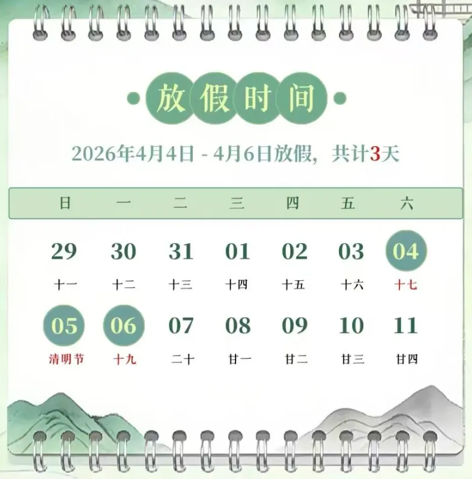 根据国务院办公厅节假日安排,2026年清明节放假时间为: