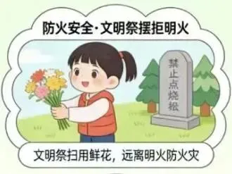 清明节是中华民倡导鲜花祭扫、网络祭扫、家庭追思等文明缅怀方式,自觉遵守防火规定,不携带火种、火源进入山林、墓园,不焚烧纸钱、不燃放烟花爆竹,祭扫完毕确认无明火再离开,严防火灾发生。
