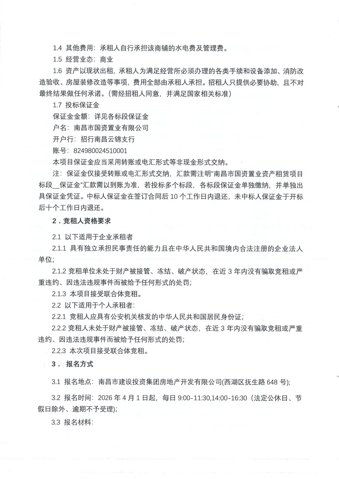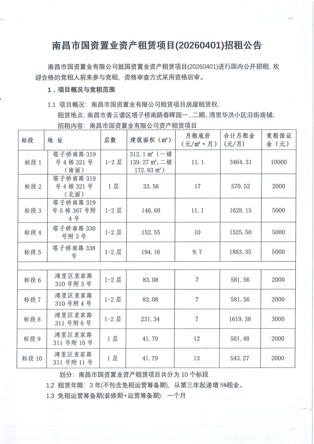 >南昌市国资置业资产租赁项目(20260401)招租公告