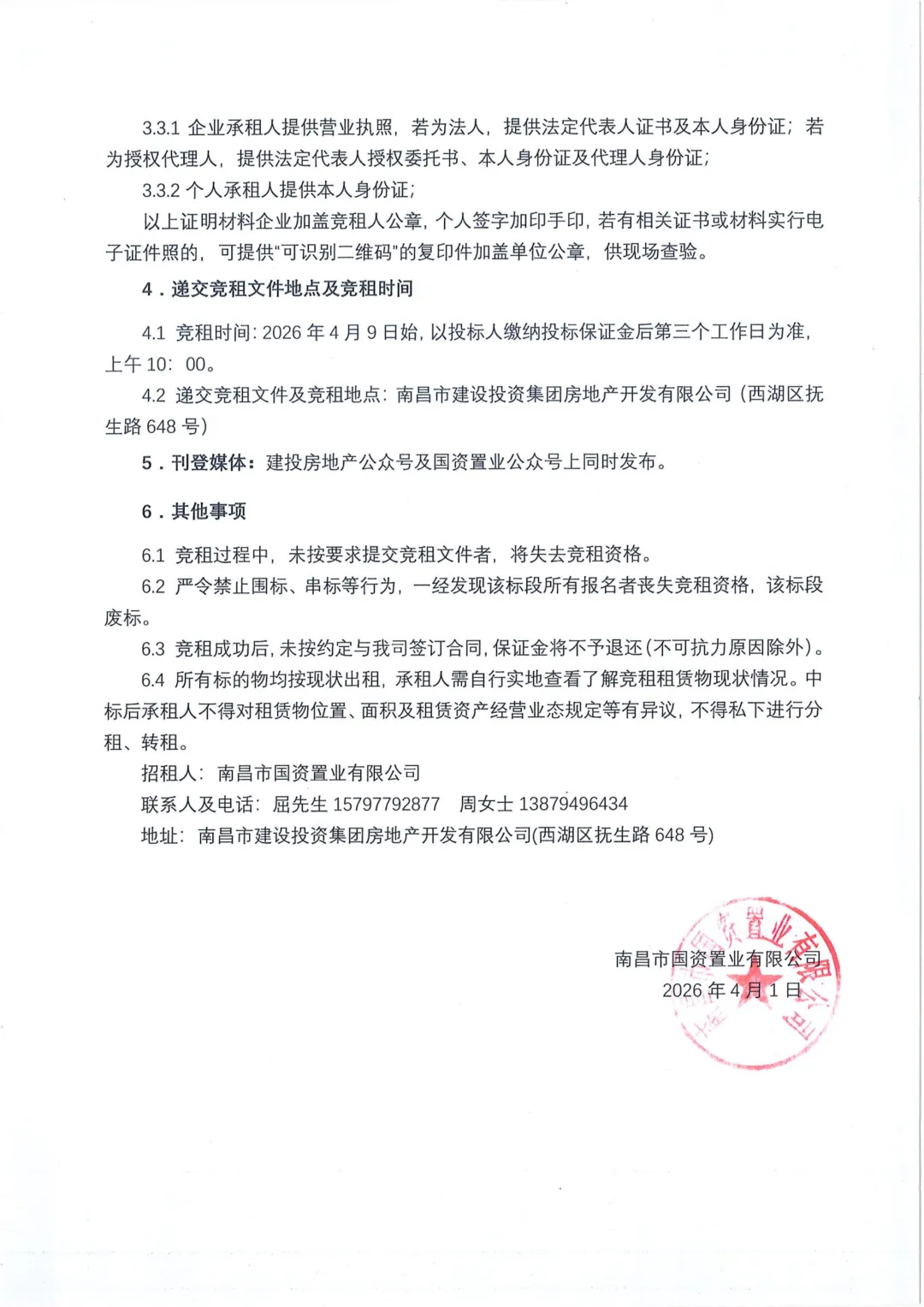 南昌市国资置业资产租赁项目(20260401)招租公告