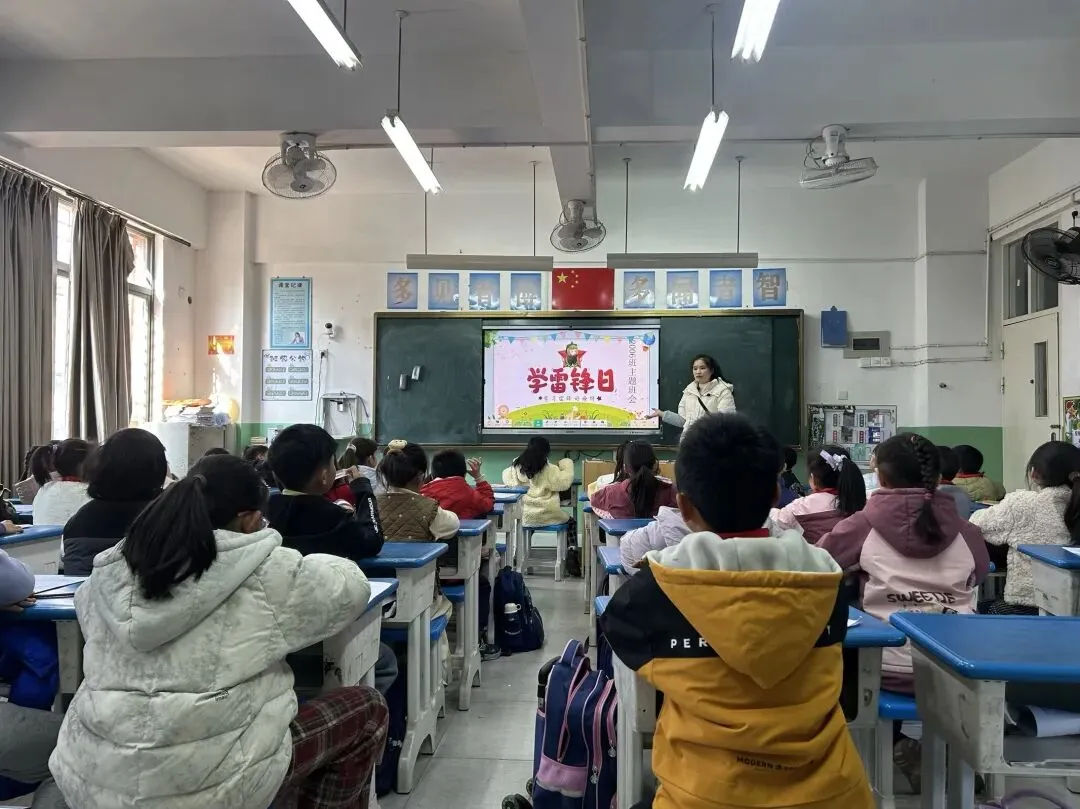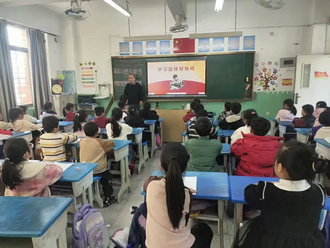 各班开展“雷锋精神我来学”主题班会。课堂上,老师们通过播放雷锋事迹影片、讲述雷锋故事、诵读雷锋名言,带领孩子们走进雷锋的世界,深入理解雷锋精神的时代内涵。孩子们踊跃分享身边的“雷锋式”好人好事,各班级共同制定学雷锋小行动计划,让“学雷锋、做雷锋”的种子在心中扎根,让雷锋精神融入日常学习生活的点点滴滴。