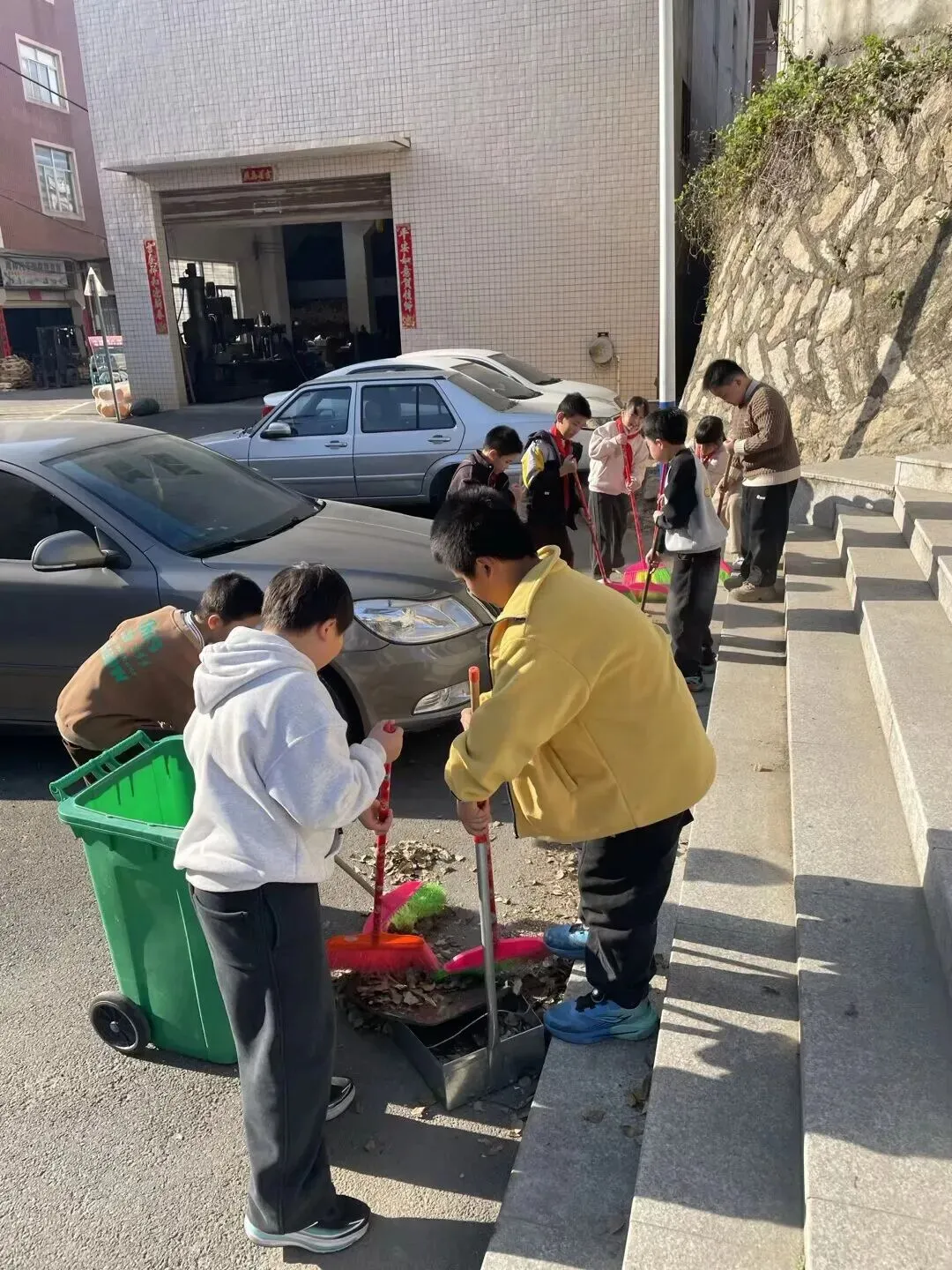 全校学子化身“四黄小卫士”,开展校园周边清扫行动。各班划分专属清扫区域,班主任提前做好交通安全和工具使用安全教育并全程陪同。孩子们手持扫把、畚斗等工具,认真捡拾校园周边道路、绿化带的垃圾,仔细清除角落杂物,用小手守护周边环境整洁,在劳动中体会奉献的快乐,彰显新时代少年的责任与担当。
