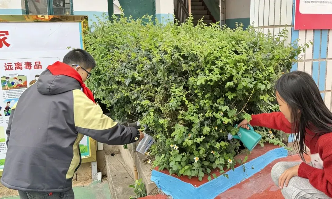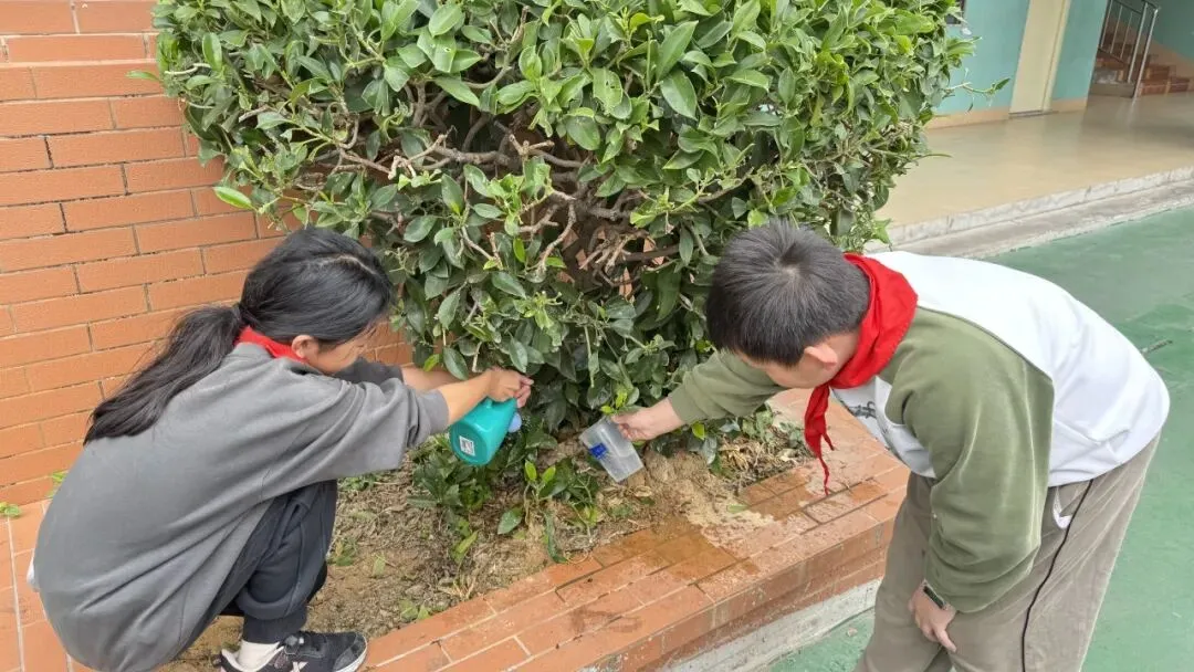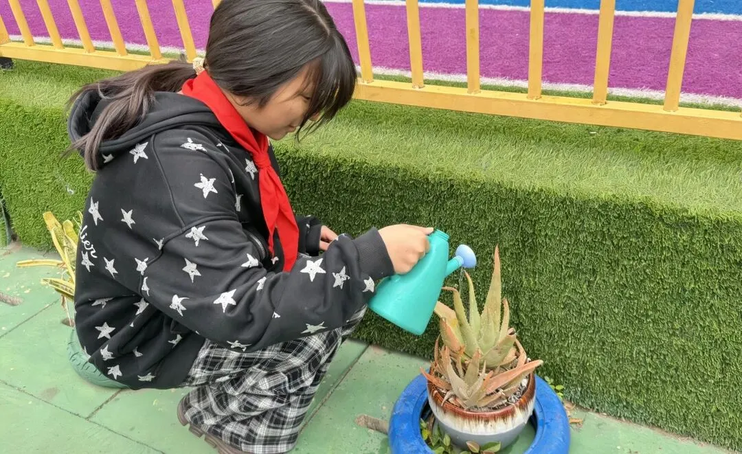 3月12日植树节当天,学校开展“锋”尚行动,绿满校园浇水养护活动。各班班主任为孩子们讲解校园植物的名称、生长习性,引导大家认识到爱护绿植、守护环境的重要性。随后,孩子们化身校园植物“守护者”,手持工具为校园的花草树木浇水、松土、除草,在亲身劳动中培养环保意识和劳动技能,让绿色理念与雷锋精神相融相通,共同为美丽校园添一抹生机。