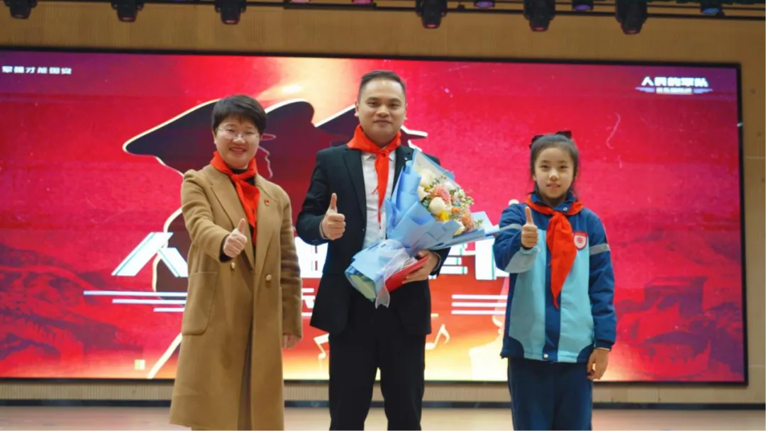 队课现场,邓昭明博士用《如愿》《半生雪》等经典歌曲串联起人民军队的奋斗历程,通过《建军大业》《八佰》等影视片段重现革命先辈的热血担当,还带领少先队员们齐诵《少年中国说》,用稚嫩却坚定的声音表达“少年强则国强”的决心。“哪有什么岁月静好,只不过是有人在负重前行”,当《如愿》的旋律响起,队员们深刻理解了人民军队“人民至上”的根本立场;当《我们是共产主义接班人》的前奏奏响,强军梦的种子在每一位少先队员心中悄然萌发。这场“如盐入水、有味无痕”的队课,让国防教育有高度、有热度、更有温度。