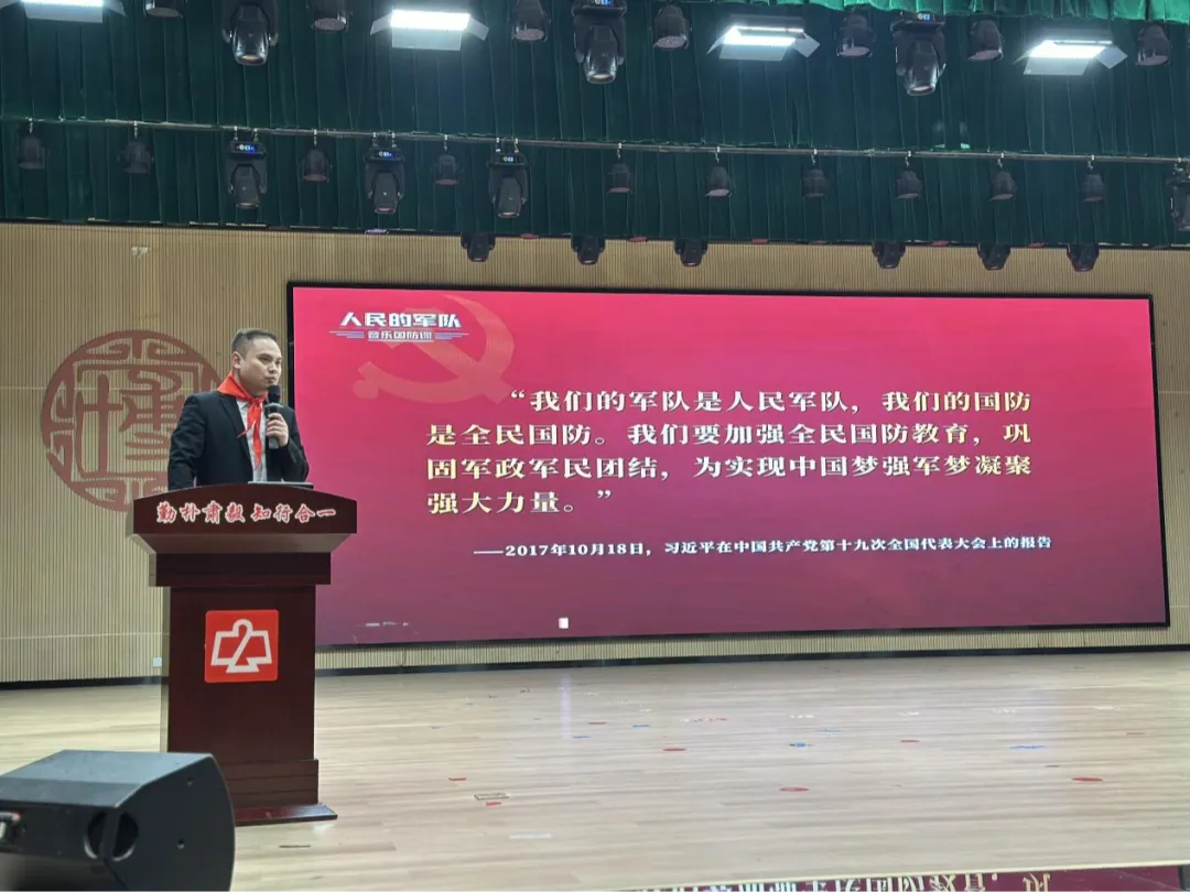 邓昭明博士是江西省学校国防教育教学指导委员会秘书长,江西科技师范大学国防教育融合发展中心主任、副教授。长期深耕全民国防教育领域,此次受聘为我校少先队校外辅导员,专门为少先队员们定制了这场别开生面的音乐国防队课。课程紧扣“人民的军队·全民的国防”主题,将百年军史、国防知识与音乐、影视、诗词等艺术形式深度融合,分为“强军梦想”“强国保障”“苦难辉煌”“人民至上”“我为国防”五个篇章,让严肃的国防教育变得生动鲜活、入脑入心。